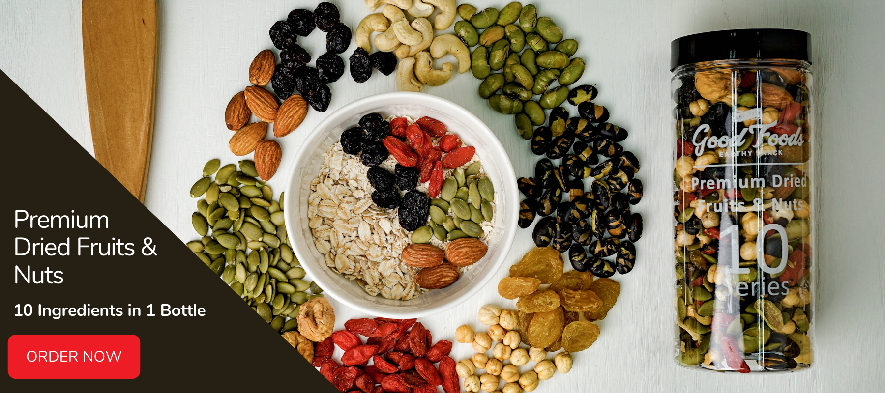 Quality and premium grade of nuts. GoodFoods 10series nuts always my best choice of breakfast with fresh fruits and yogurt. Simple and Healthy foods